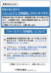 このたび、令和8年4月1日より「ベースアップ評価料」の算定を開始いたします。